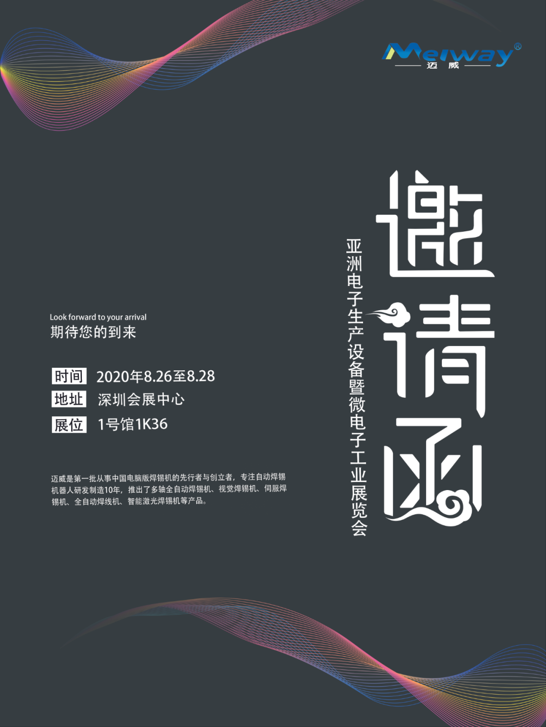 NEPCON ASIA亞洲電子生產(chǎn)設(shè)備暨微電子工業(yè)展覽會(huì)將于2020年8月26-28日在深圳會(huì)展中心盛大展出。屆此邁威測(cè)控技術(shù)有限公司董事長(zhǎng)及全體員工誠(chéng)摯邀請(qǐng)您的到來(lái)。邁威秉承專業(yè)為本,服務(wù)至上原則,精心為每一位客戶呈現(xiàn)非凡的的體驗(yàn)與驚喜!(PS:現(xiàn)場(chǎng)有精美禮物贈(zèng)送哦!)